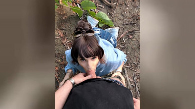 Outdoor Blowjob for Jeans Fan! Tranny Ass Full with Cum and Everyone Can See It!