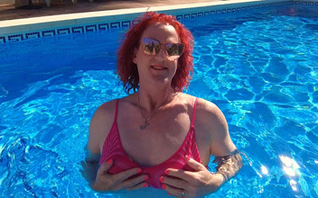 Just me, in a bikini, splashing about in a pool on holiday in Spain